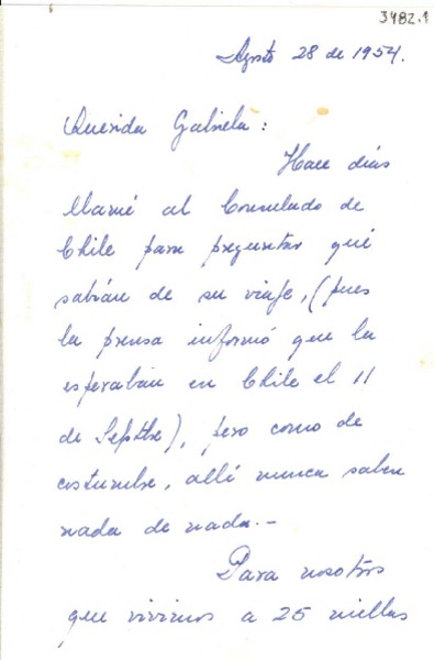 [Carta] 1951 ago. 5, Panamá [a] Gabriela Mistral [manuscrito] Duendecito.