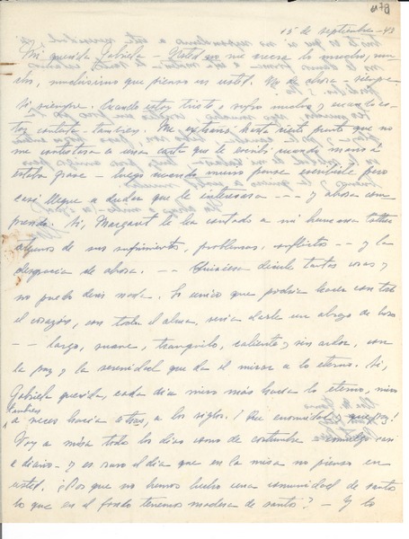 [Carta] 1943 sept. 15, Puerto Rico [a] Gabriela Mistral [manuscrito] Elsa [Fano].