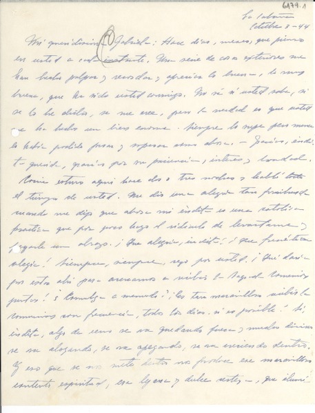[Carta] 1944 oct. 3, [Puerto Rico] [a] Gabriela Mistral [manuscrito] Elsa [Fano].