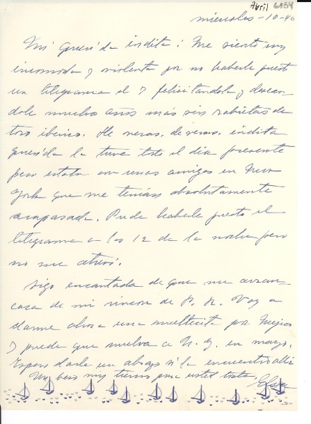 [Carta] 1946 abr. 10, [Puerto Rico] [a] [Gabriela Mistral] [manuscrito] Elsa [Fano].