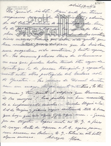 [Carta] 1946 abr. 19, [México] [a] Gabriela Mistral [manuscrito] Elsa Fano.