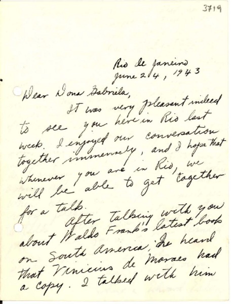 [Carta] 1943 jun. 24, Río de Janeiro [a] Gabriela Mistral [manuscrito] Charles Edward Eaton.