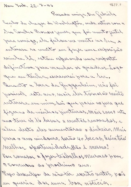 [Carta] 1946 jul. 22, New York [a] Gabriela [Mistral] [manuscrito] Djarmira G. Pereira.