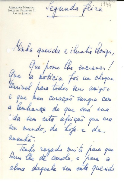 [Carta] 1944 sept. 7, Rio de Janeiro, [Brasil] [a] [Gabriela Mistral] [manuscrito] Carolina Nabuco.