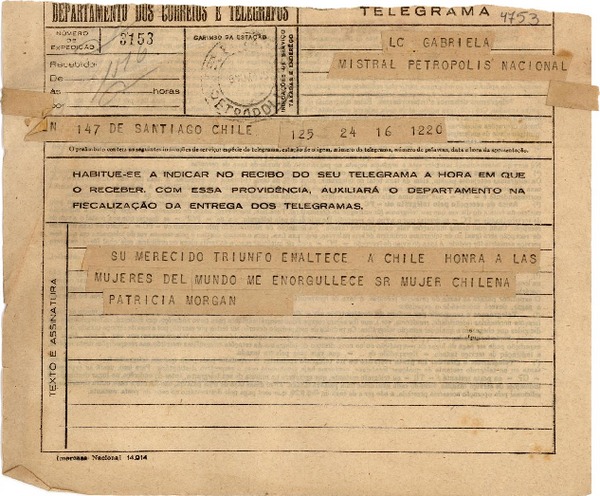 Correspondencia - Morgan, Patricia - Mistral, Gabriela - Manuscritos chilenos - Autoras chilenas
