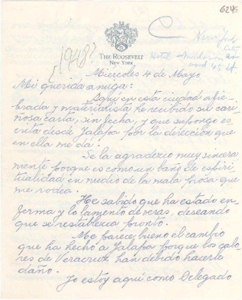 [Carta] 1948 mayo 4, Nueva York [a] Gabriela Mistral [manuscrito] E. Gajardo.