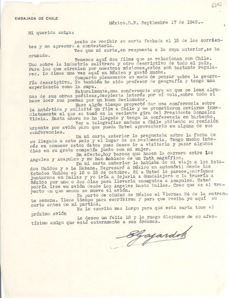 [Carta] 1948 sept. 17, México D. F. [a] Gabriela Mistral [manuscrito] E. Gajardo.