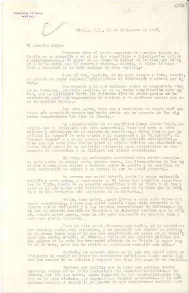 [Carta] 1948 dic. 15, México D. F. [a] Gabriela Mistral [manuscrito] Enrique Gajardo V.