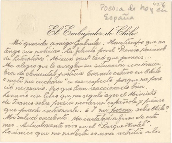 Gajardo Villarroel, Enrique - Correspondencia - Mistral, Gabriela - Manuscritos chilenos
