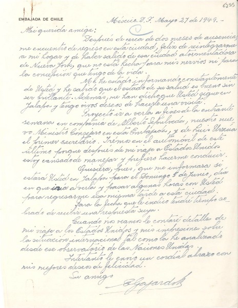 [Carta] 1949 mayo 27, México D. F. [a] Gabriela Mistral [manuscrito] E. Gajardo.