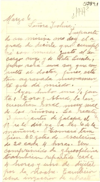 [Carta] [1947?] mar. 6, [Chile] [a] Isolina [Barraza de Estay] [manuscrito] De un amigo.