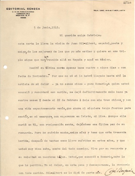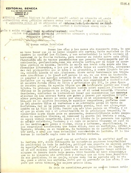[Carta] 1942 mar. 4, México D.F. [a] Gabriela Mistral, Petrópolis, [Brasil] [manuscrito] José Bergamín.