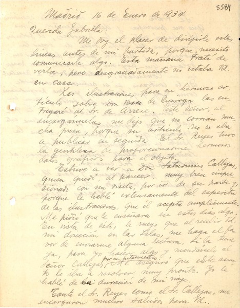 [Carta] 1934 ene. 16, Madrid, [España] [a] Gabriela [Mistral] [manuscrito] Isaías Cabezón.