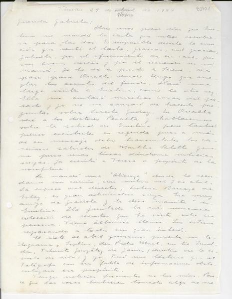 [Carta] 1944 abr. 29, Vicuña, [Chile] [a] Gabriela [Mistral] [manuscrito] Marta [Samatan].