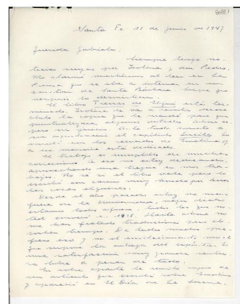 [Carta] 1947 jun. 11, Santa Fe, [Argentina] [a] Gabriela Mistral [manuscrito] Marta [Samatan].