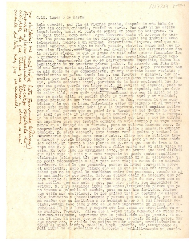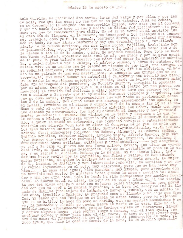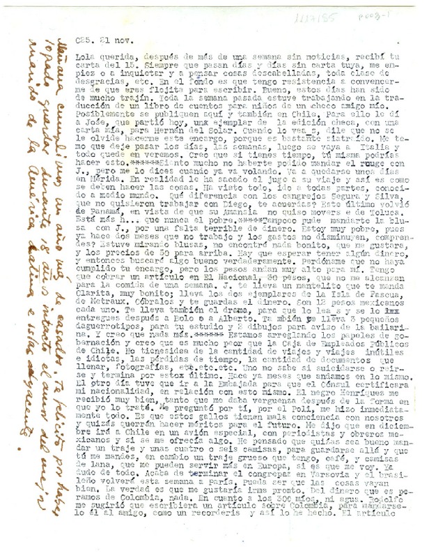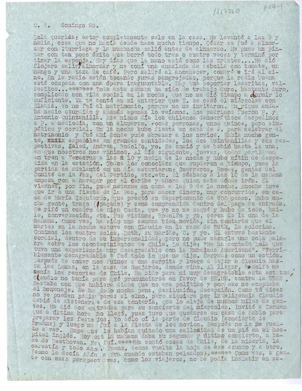 Falcón, Lola - Correspondencia - Autores chilenos - Manuscritos chilenos - Délano, Luis Enrique