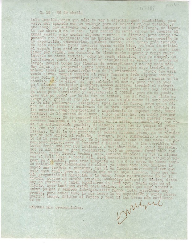 [Carta] [1951] abril 26, [México] [a] Lola Falcón [manuscrito] Luis Enrique Délano.