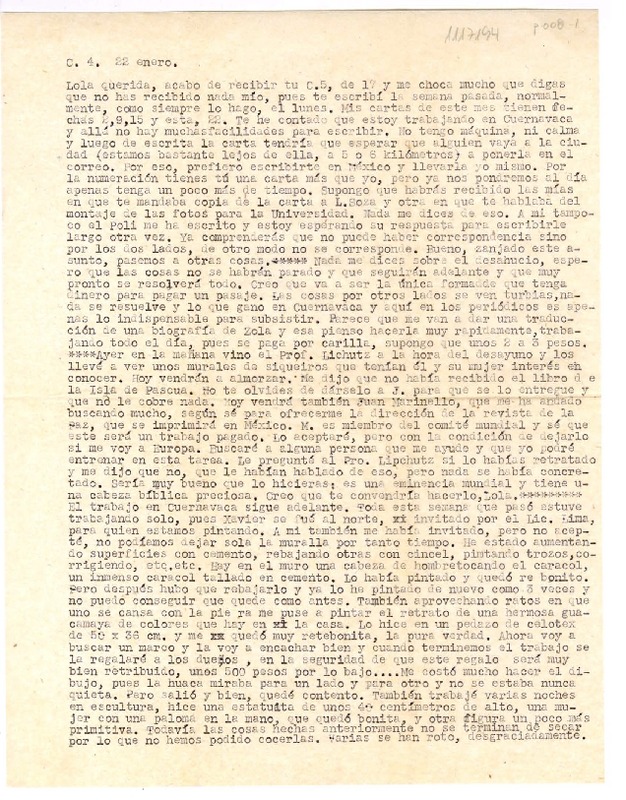 [Carta] [1949] enero 22 [México] [a] Lola Falcón [manuscrito] Luis Enrique Délano.