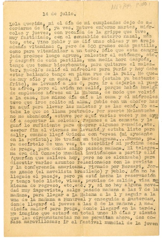 [Carta] [1950] julio 14, [México] [a] Lola Falcón [manuscrito] Luis Enrique Délano.