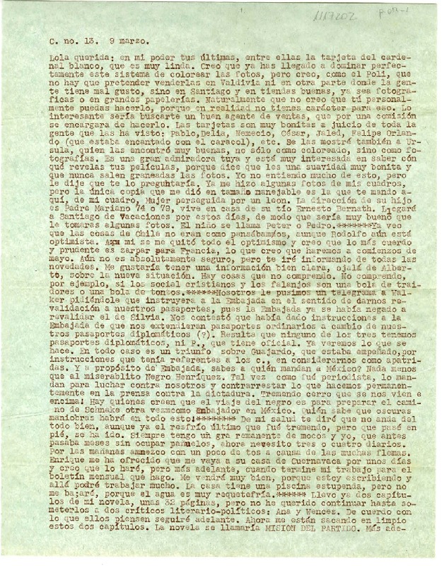 Manuscritos chilenos - Autores chilenos - Correspondencia - Délano, Luis Enrique - Falcón, Lola