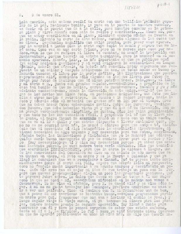 [Carta] 1951 enero 9, [México] [a] Lola Falcón [manuscrito] Luis Enrique Délano.
