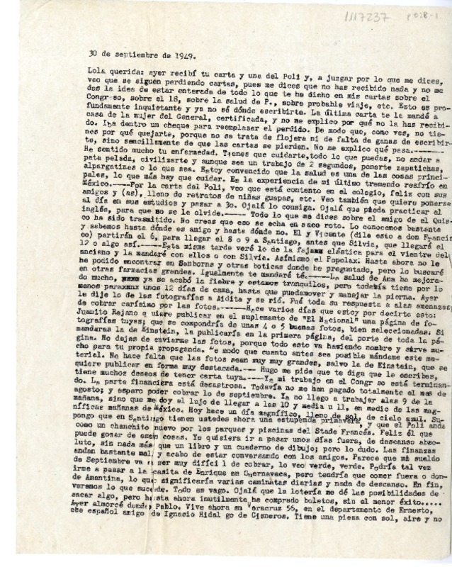 [Carta] 1949 septiembre 30, México D. F. [a] Lola Falcón [manuscrito] Luis Enrique Délano.