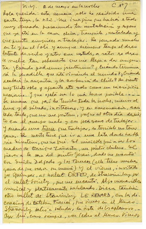 Nueva York [a] Salvador Reyes Cartas, 1949 febrero 14 y marzo 29, [manuscrito] Luis Enrique Délano.