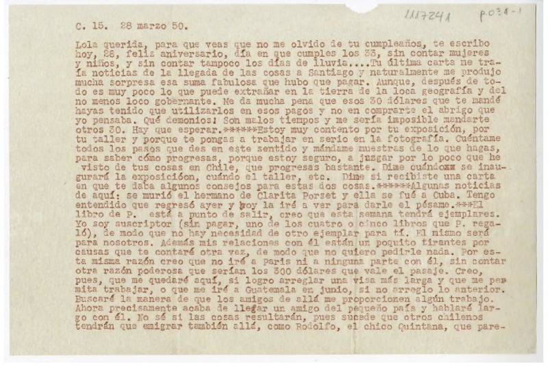 [Carta] [1948] marzo 16 y 17, [Nueva York] [a] Lola Falcón [manuscrito] Luis Enrique Délano.