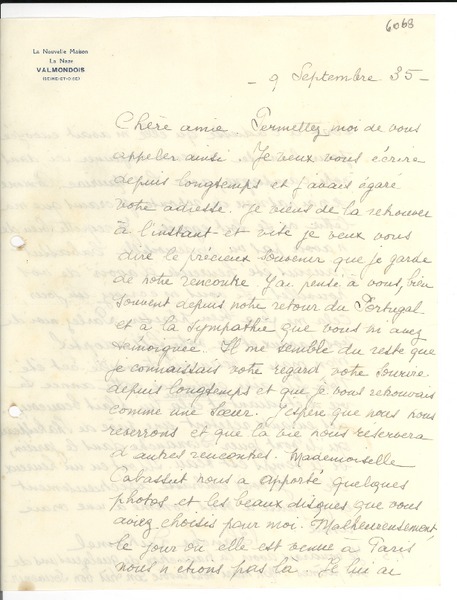 [Carta] 1935 sept. 9, [Francia] [a] [Gabriela Mistral] [manuscrito] Blanche Duhamel.