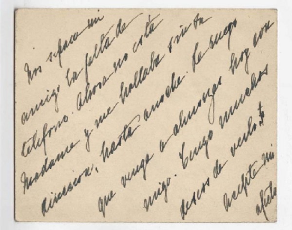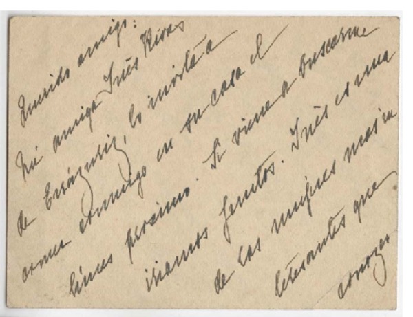 [Tarjeta] 1940?, Santiago, Chile [a] Miguel Munizaga [manuscrito] Inés Echeverría Bello (Iris).