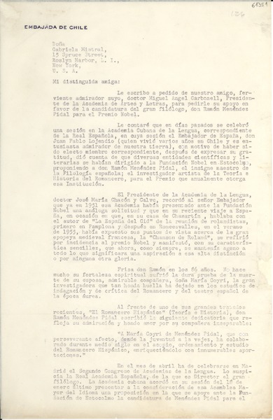 Edwards Bello, Emilio - Mistral, Gabriela - Correspondencia - Manuscritos chilenos