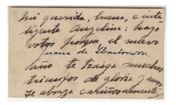 [Tarjeta] 1932 ene. 1, Montevideo, Uruguay [a] Angelina [manuscrito] Juana de Ibarbourou.