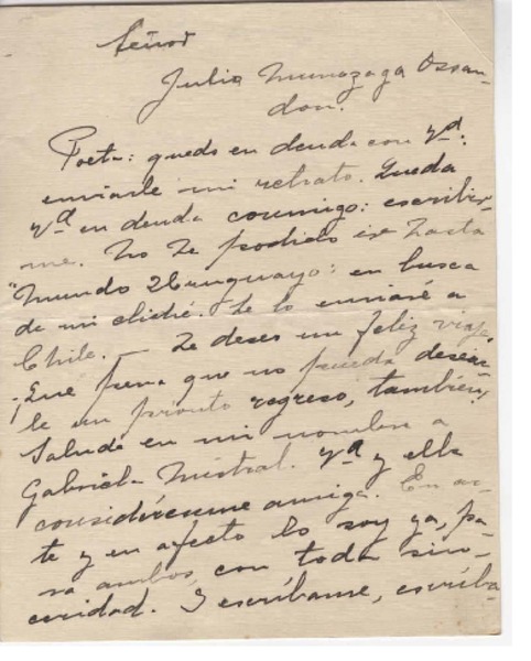 [Carta] 1919 sep. 3, Montevideo, Uruguay [a] Julio Munizaga Ossandón [manuscrito] Juana de Ibarbourou.
