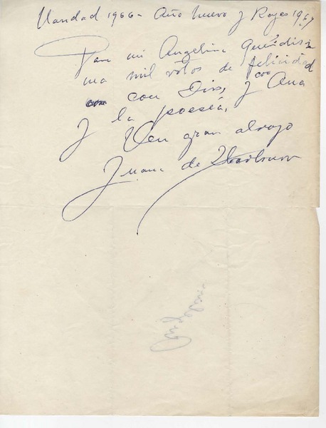 [Carta] 1966 diciembre, Montevideo, Uruguay [a] Angelina [manuscrito] Juana de Ibarbourou.