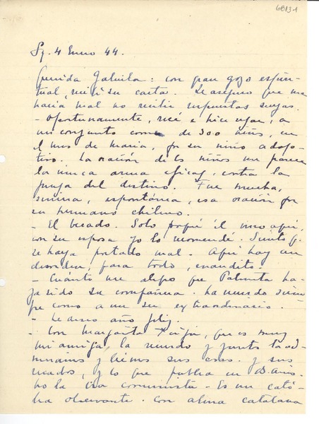 [Carta] [19]44 ene. 4, [Santiago, Chile?] [a] Gabriela [Mistral]