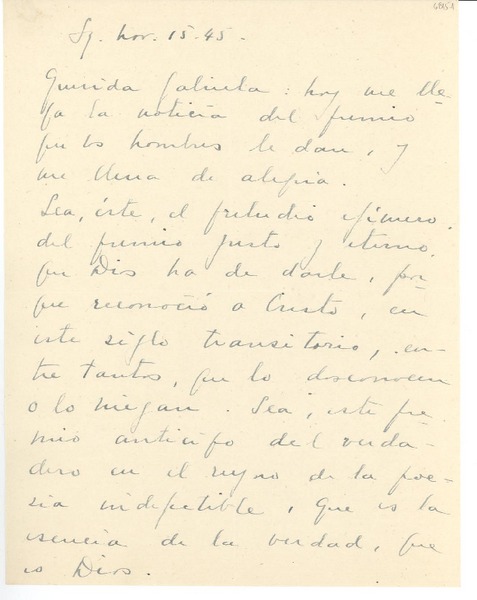 [Carta] 1945 nov. 15, [Santiago, Chile] [a] Gabriela [Mistral]