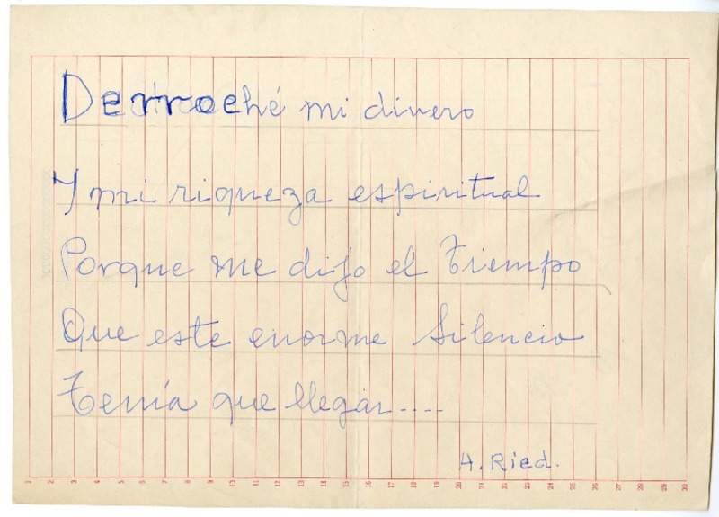 [derroché mi dinero...] [manuscrito] Alberto Ried Silva.
