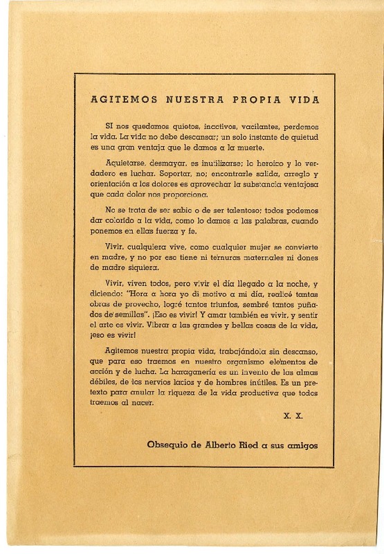 [Agitemos nuestra propia vida...] [manuscrito] Alberto Ried Silva.