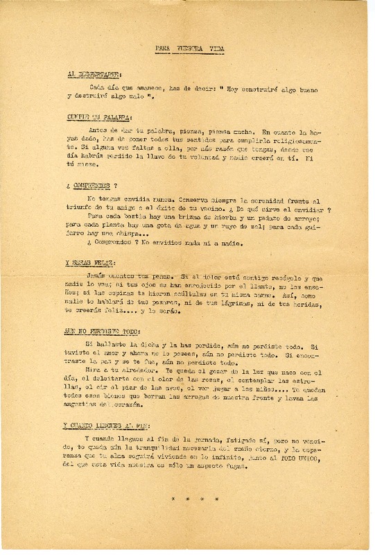 Para vuestra vida [manuscrito] Alberto Ried Silva.