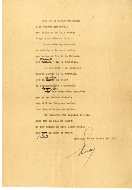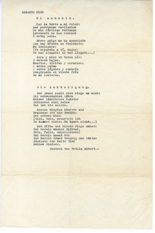 [Miro en la compañera amada...] [manuscrito] Alberto Ried Silva.