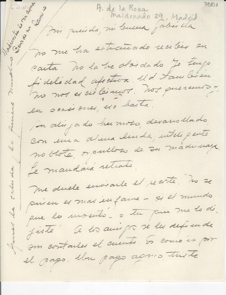 [Carta] Madrid, [España] [a] [Gabriela Mistral] [manuscrito] Amira [de la Rosa].