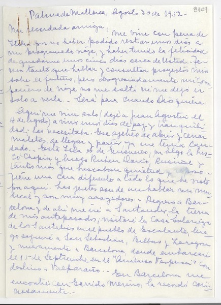 [Carta] 1952 ago. 30, Palma de Mallorca, [España] [a] [Gabriela Mistral] [manuscrito] Isauro de los Andes.