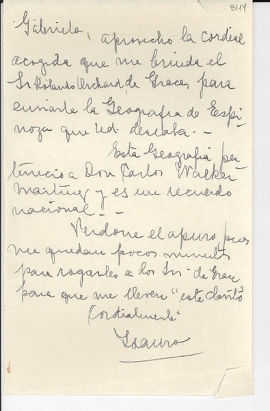 [Carta] [195?] , [Chile] [a] Gabriela [Mistral] [manuscrito] Isauro [Santelices].