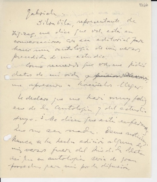 Mistral, Gabriela - Silva Valdés, Fernán - Manuscritos uruguayos - Autores uruguayos - Correspondencia