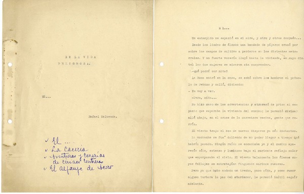 En la vida peligrosa [manuscrito] Rafael Maluenda