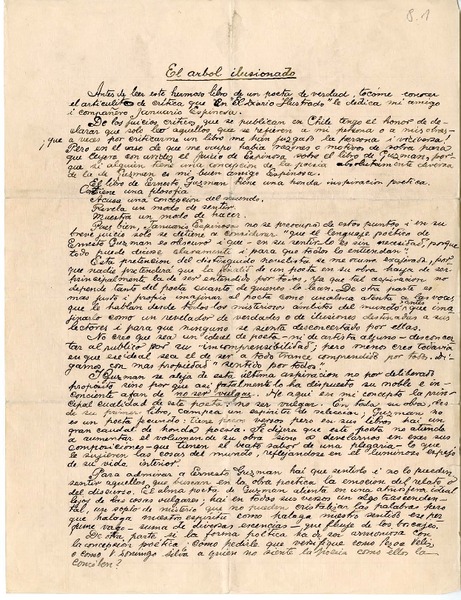 Árbol ilusionado - Manuscritos chilenos - Guzmán, Ernesto A. - Crítica literaria