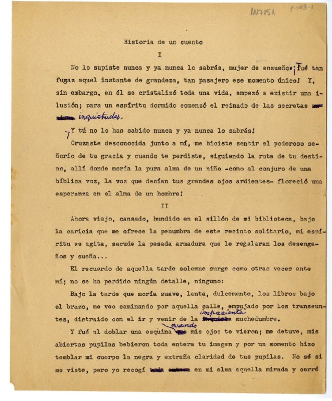 Historia de un cuento [manuscrito] Rafael Maluenda.