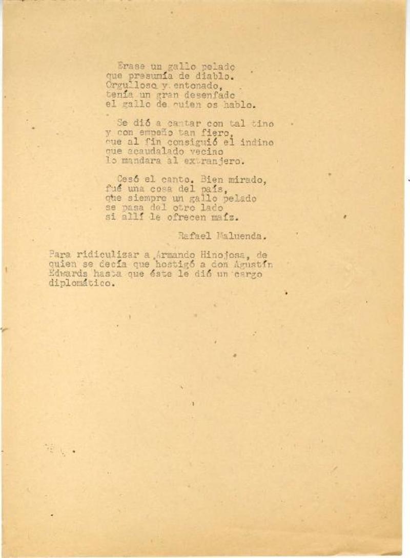 [Érase un gallo...] [manuscrito] Rafael Maluenda.