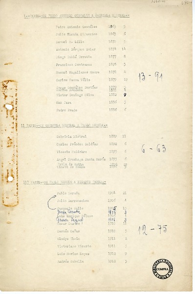 Ferrero, Mario - Correspondencia - Manuscritos chilenos - Agrella, Neftalí - Autores chilenos