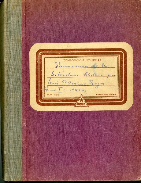 Panorama de la literatura chilena [manuscrito] Luis Merino Reyes.
